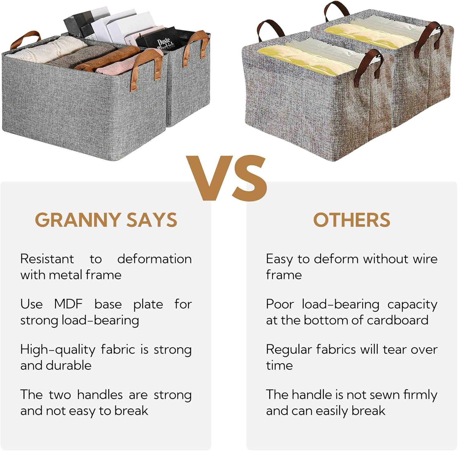 The collapsible design of the GRANNY SAYS Storage Baskets and Bins makes them easy to store when not in use, saving valuable space in your closet. The sturdy construction ensures that these baskets will withstand daily use and keep your belongings neatly organized for years to come.