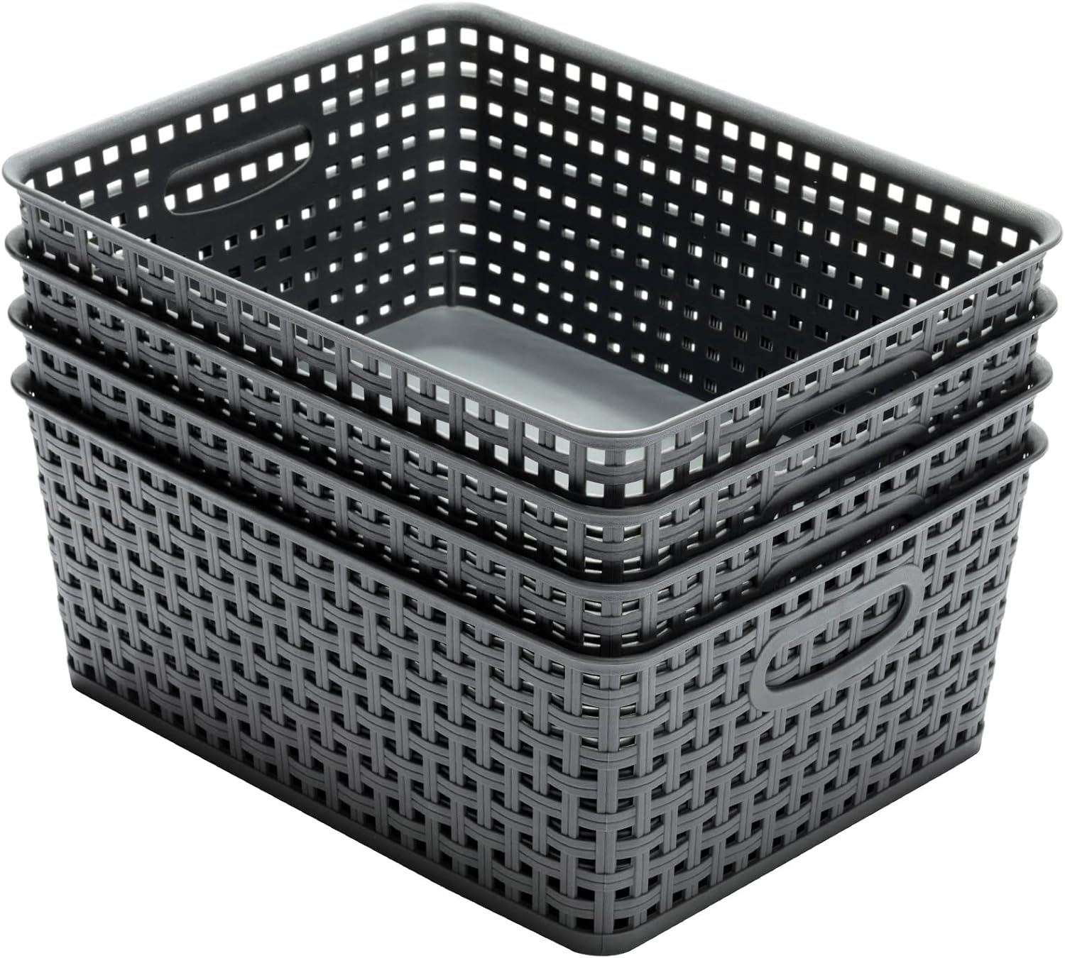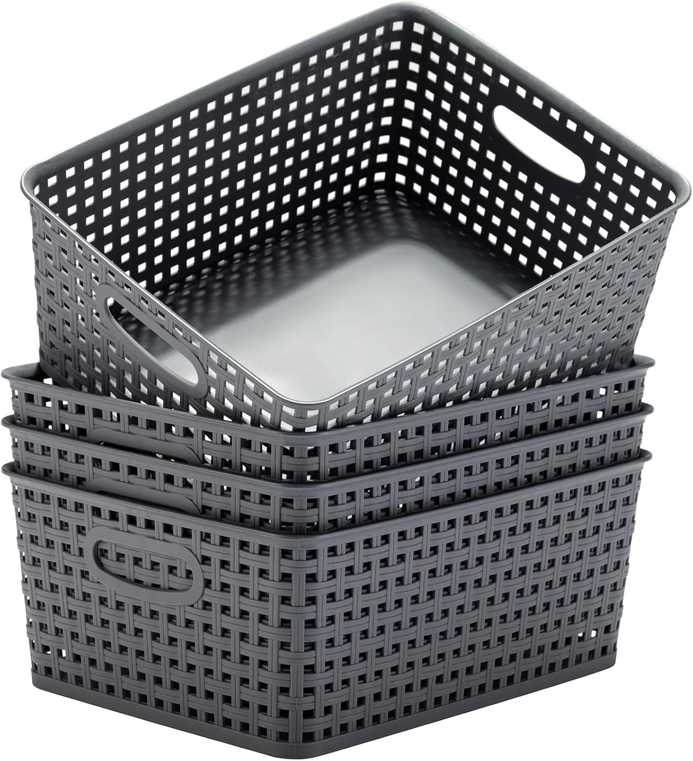Introducing the ultimate solution to your cluttered spaces – the Plastic Storage Baskets for Organizing! Keep your home neat and tidy with this set of 4 high-quality baskets in a sleek grey color.