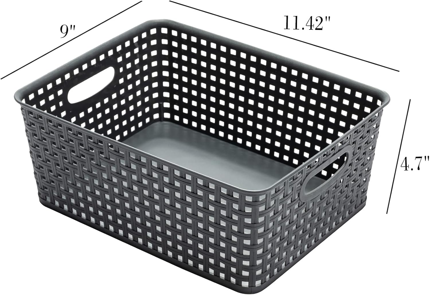 Measuring 11.42″ x 9″ x 4.7″, these baskets are the perfect size for organizing a variety of items such as toys, books, clothes, and more. Made from durable plastic, these baskets are built to last and withstand daily use.