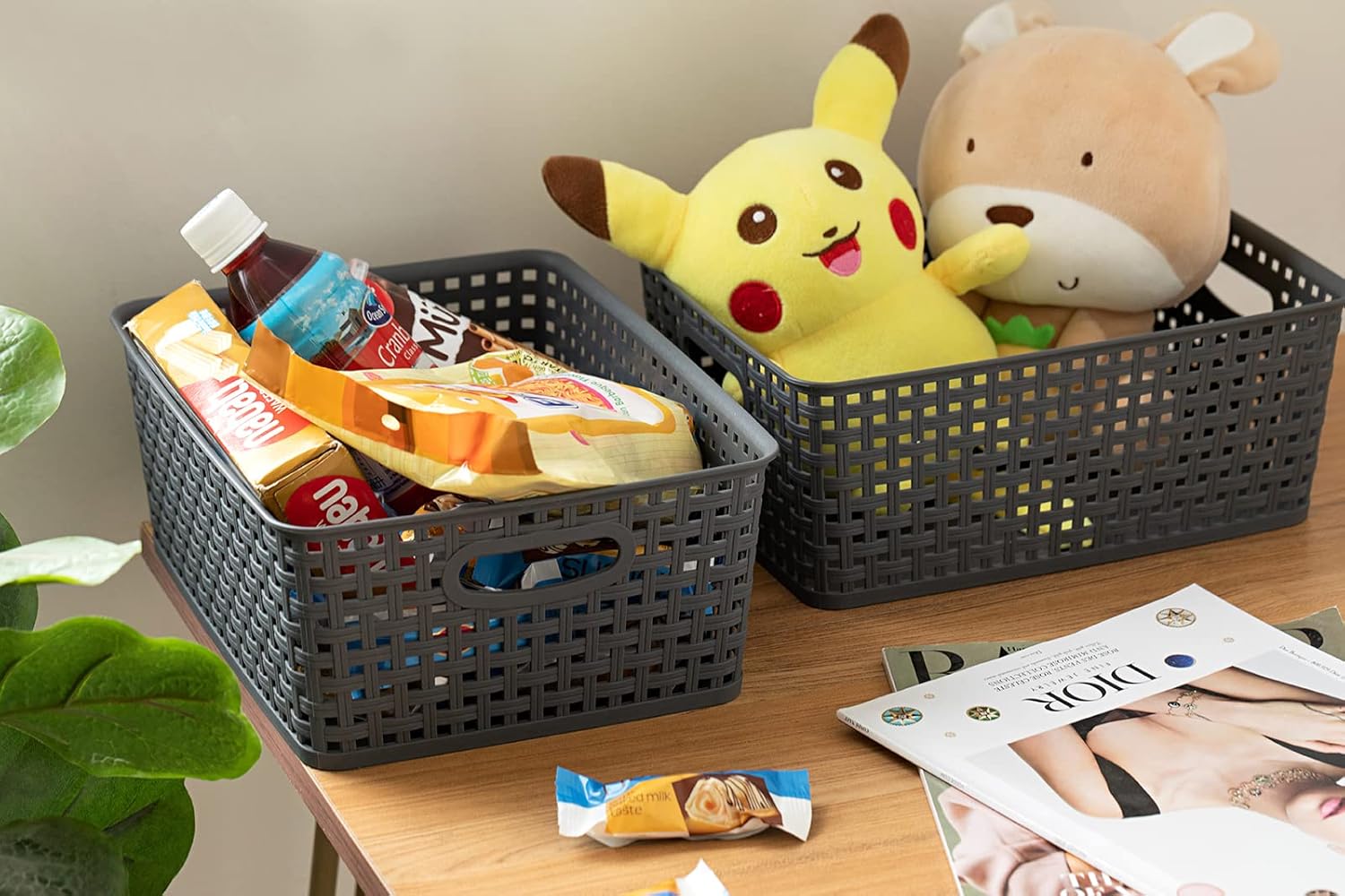 Whether you use them in your bedroom, bathroom, kitchen, or office, these Plastic Storage Baskets for Organizing are versatile and will help you keep your spaces clutter-free. Say goodbye to messy rooms and hello to organized bliss with these stylish and functional storage baskets!